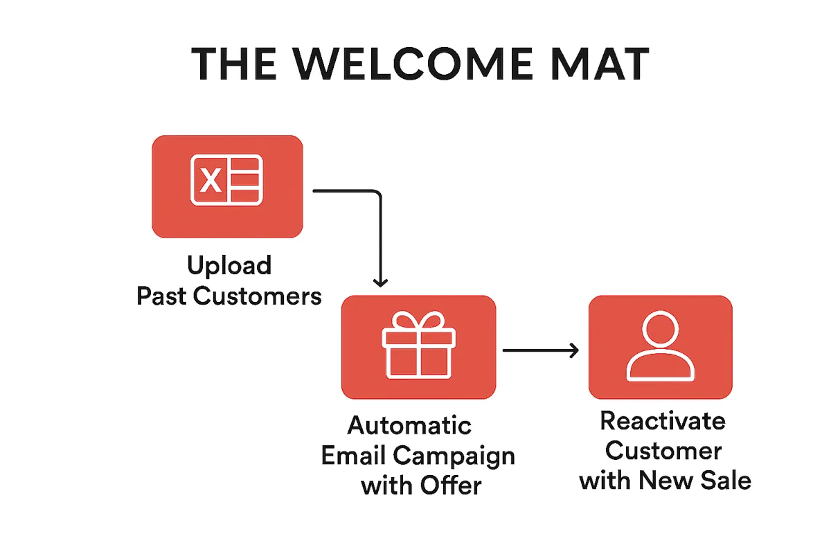 Your best customers are the ones you’ve already served. The Welcome Mat is a reactivation campaign designed to bring them back. We take your past customer list, load it into our system, and deliver a personalised email campaign with a compelling new offer.